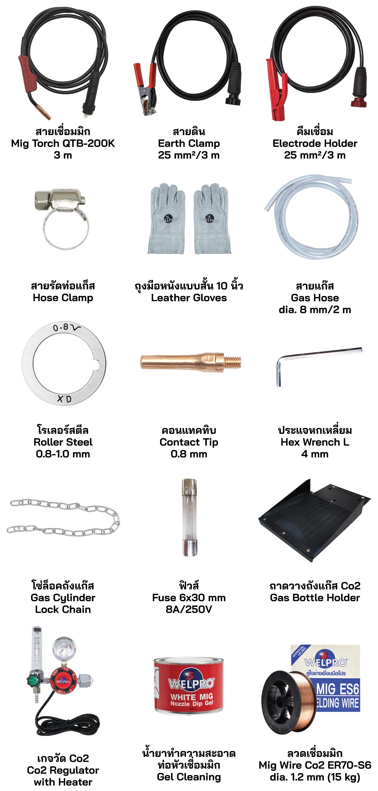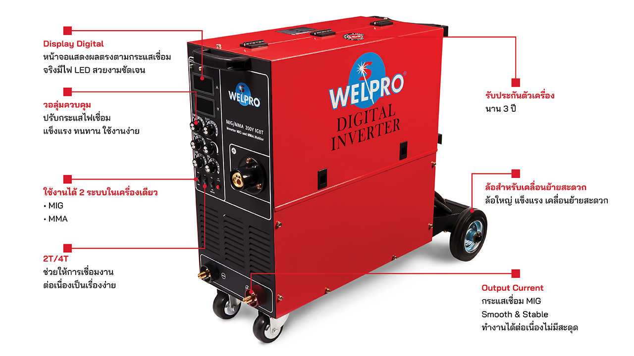 เครื่องเชื่อมอินเวอร์เตอร์ WELPRO รุ่น WELMIG 200Y IGBT / ( เชื่อมมิก , เชื่อมCO2 )