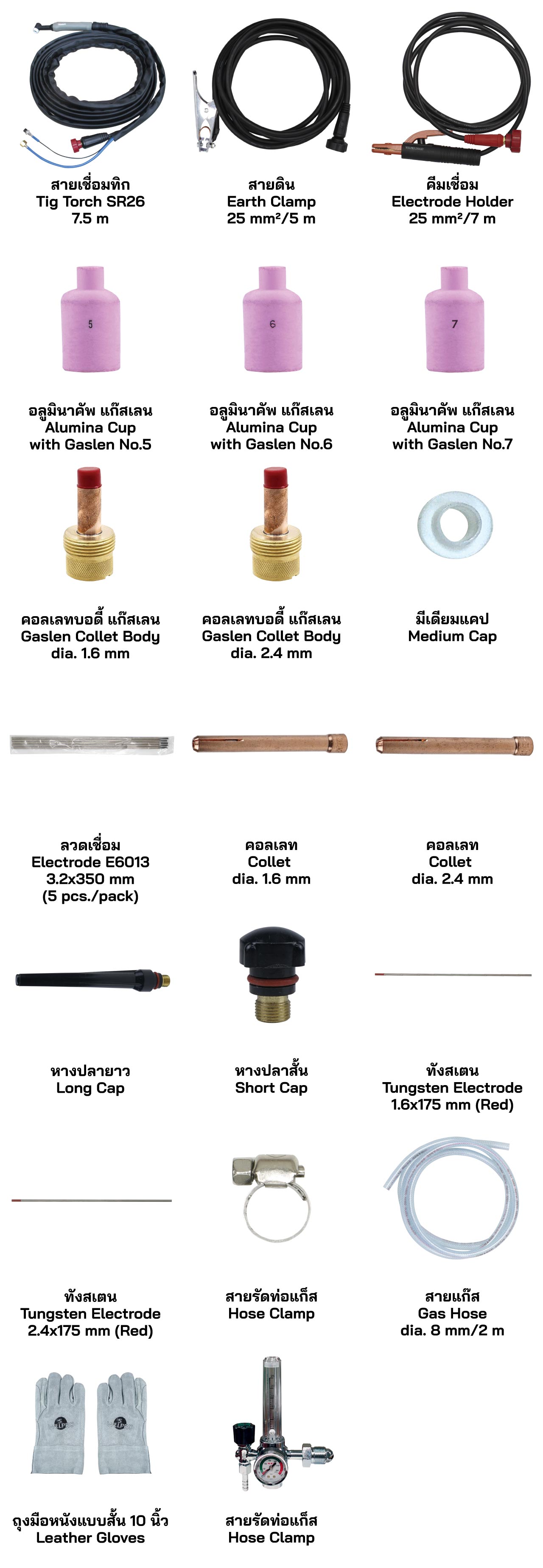 กระแสเชื่อม TIG DC 10-250A / MMA 10-220A
