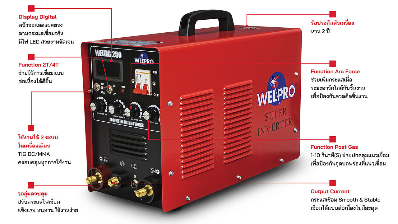 เครื่องเชื่อมอินเวอร์เตอร์ WELPRO รุ่น WELTIG 250 DC ( 220V/50Hz ) / ( เชื่อมทิก , เชื่อมอาร์กอน )