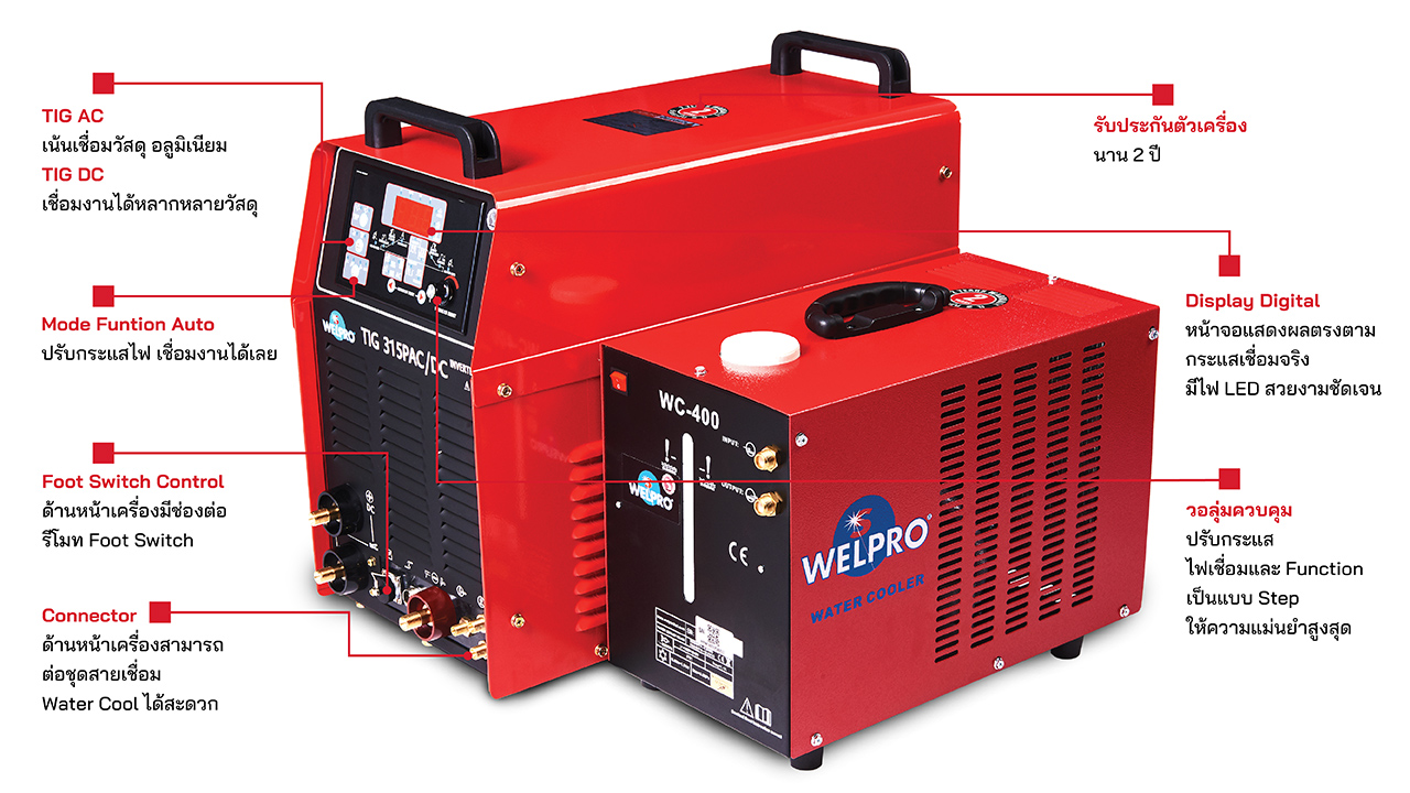 เครื่องเชื่อมอินเวอร์เตอร์ WELPRO รุ่น WELTIG 315P AC/DC ( Digital ) พร้อม Water Cooler / ( เชื่อมทิก , เชื่อมอาร์กอน )
