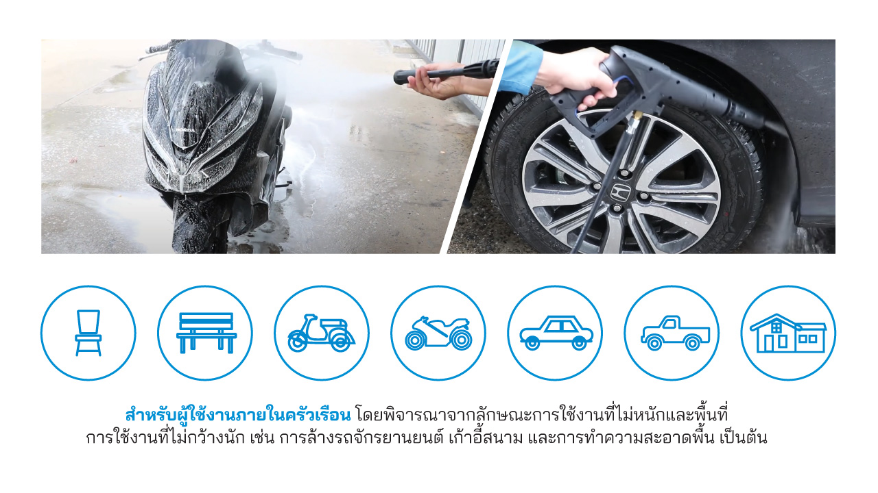 ล้างพื้น-ผนัง-กำแพงรั้วบ้าน, ล้างรถจักรยานยนต์, ล้างรถยนต์เล็ก-รถกระบะ-รถตู้ เป็นต้น